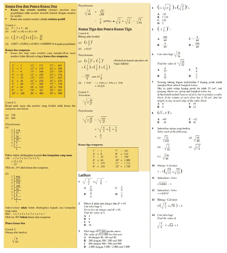Punca kuasa dua dan punca kuasa tiga matematik tingkatan 1.